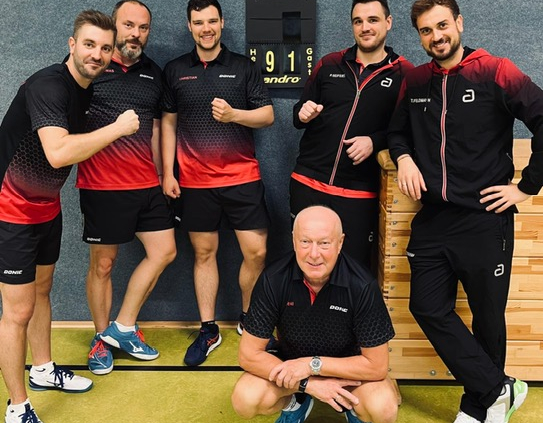 Unsere Gegner aus Langenfeld waren für uns keine Unbekannten. Im letzten Jahr galten sie nach eine katastrophalen Hinserie als sicherer Abstiegskandidat. Sie legten aber eine beeindruckende Rückserie hin und sind nun in der aktuellen Saison personell deutlich besser aufgestellt. Wir sahen uns daher bestenfalls auf Augenhöhe. Aber wir kamen diesmal gut aus den Startlöchern. Mit einer 2:1 Führung ging es aus den Doppeln in die Einzel. Dennis und Thomas harmonieren immer besser und gewannen klar, Bernie und Patrick im Doppel Zwei konnten gegen das Doppel Eins der Gäste zumindest lange gut mithalten. Eine erste Vorentscheidung war vielleicht der souveräne Sieg im Doppel Drei von Tim und Christian. Danach lief es wie am Schnürchen für uns und wir hatten in den entscheidenden Momenten auch das Quäntchen Glück auf unserer Seite. Richtig eng wurde wurde es letztlich nur noch bei Thomas und Patrick. Thomas spielte stark und setzte sich gegen Strothmann im fünften Satz durch. Patrick musste gegen Enqvist zittern und mehrere Matchbälle abwehren – konnte sich aber am Ende auch dank dem ein oder anderen Nassen noch in der Verlängerung des fünften Satzes durchsetzen. Danach ging kein Einzel mehr verloren und wir gewannen die Partie überraschend klar mit 9:1. Mit 6:6 Punkten rangieren wir nun auf Platz 5. Hört sich erstmal gut an – ist aber nur eine Momentaufnahme. Die Liga ist weiterhin sehr ausgeglichen und unser Restprogramm hat es in sich. Unser nächster Gegner ist dann der SV DJK Holzbüttgen II.
